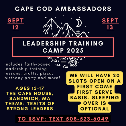 Thank you to everyone who came out for the Cape Cod Ambassadors’ Camp Dinner and a Movie event! We had a great night together and launched our mission!